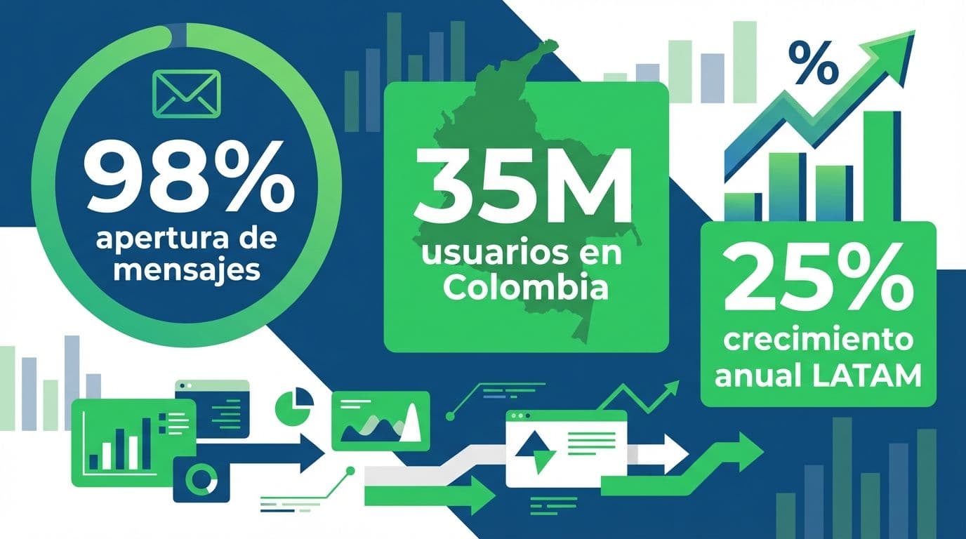 WhatsApp no es solo una app de mensajería en Colombia: es el canal de comunicación más importante para empresas y consumidores. Con más de 35 millones de usuarios activos en el país y una tasa de apertura de mensajes superior al 98%, ninguna otra plataforma se le acerca. Sin embargo, la mayoría de las empresas colombianas aún gestionan sus conversaciones de forma manual, perdiendo ventas, tiempo y clientes en el proceso.